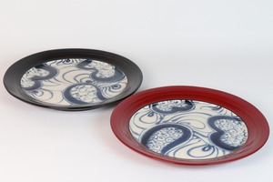 陶器に本漆を施し、重厚で艶やかな美しさをもつ陶器の質感と、日本古来の深い色合いをもつ曙(黒)、根来(赤)の伝統的な漆塗りの質感を堪能できる二つの美を併せ持った器です。
