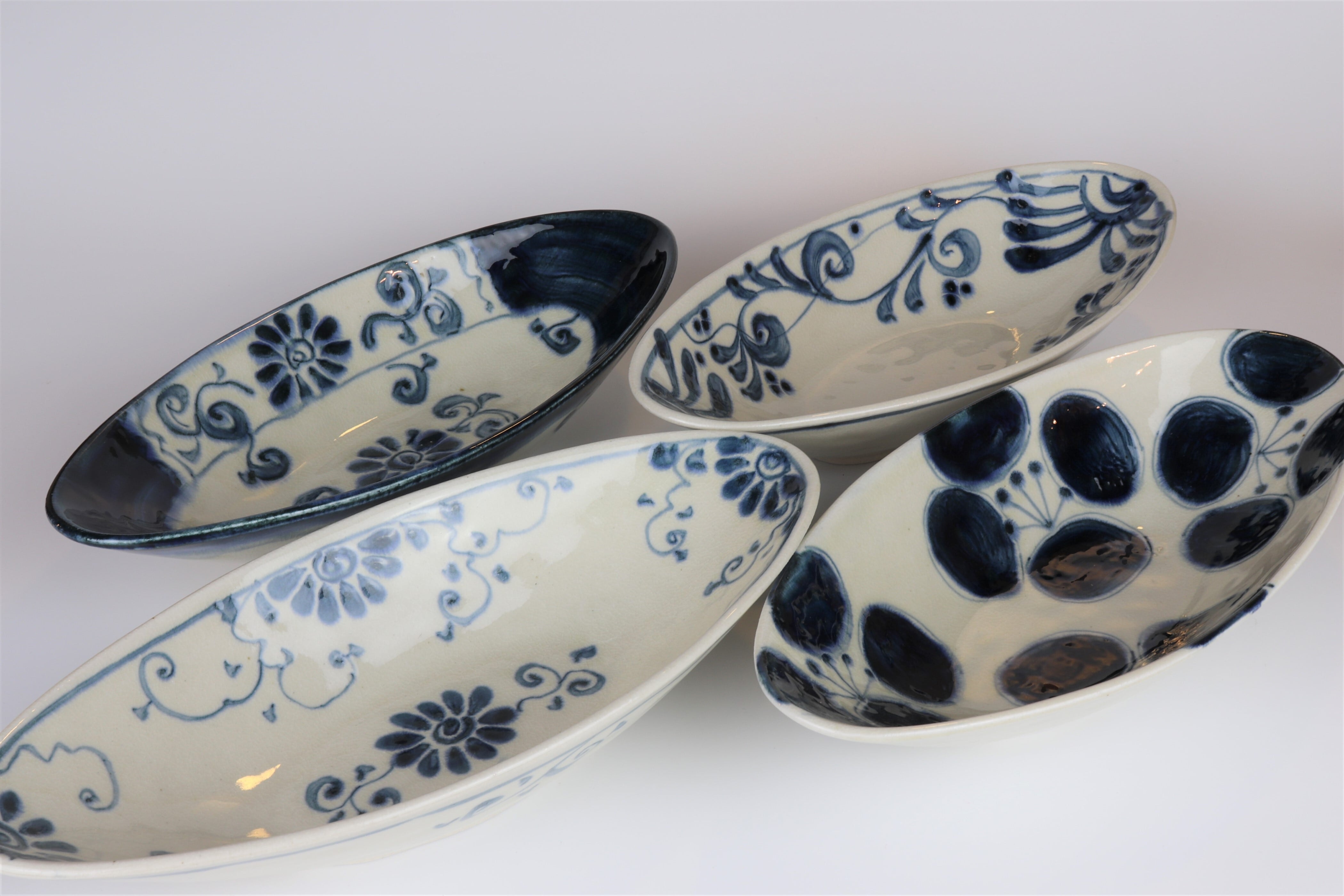 安南シリーズは、職人による手描きの染付に貫入釉(釉と素地の収縮率の差により、焼成後の冷却時に生じた釉のひび模様のこと)を施す事でがやわらかな風合いが特徴の商品です。