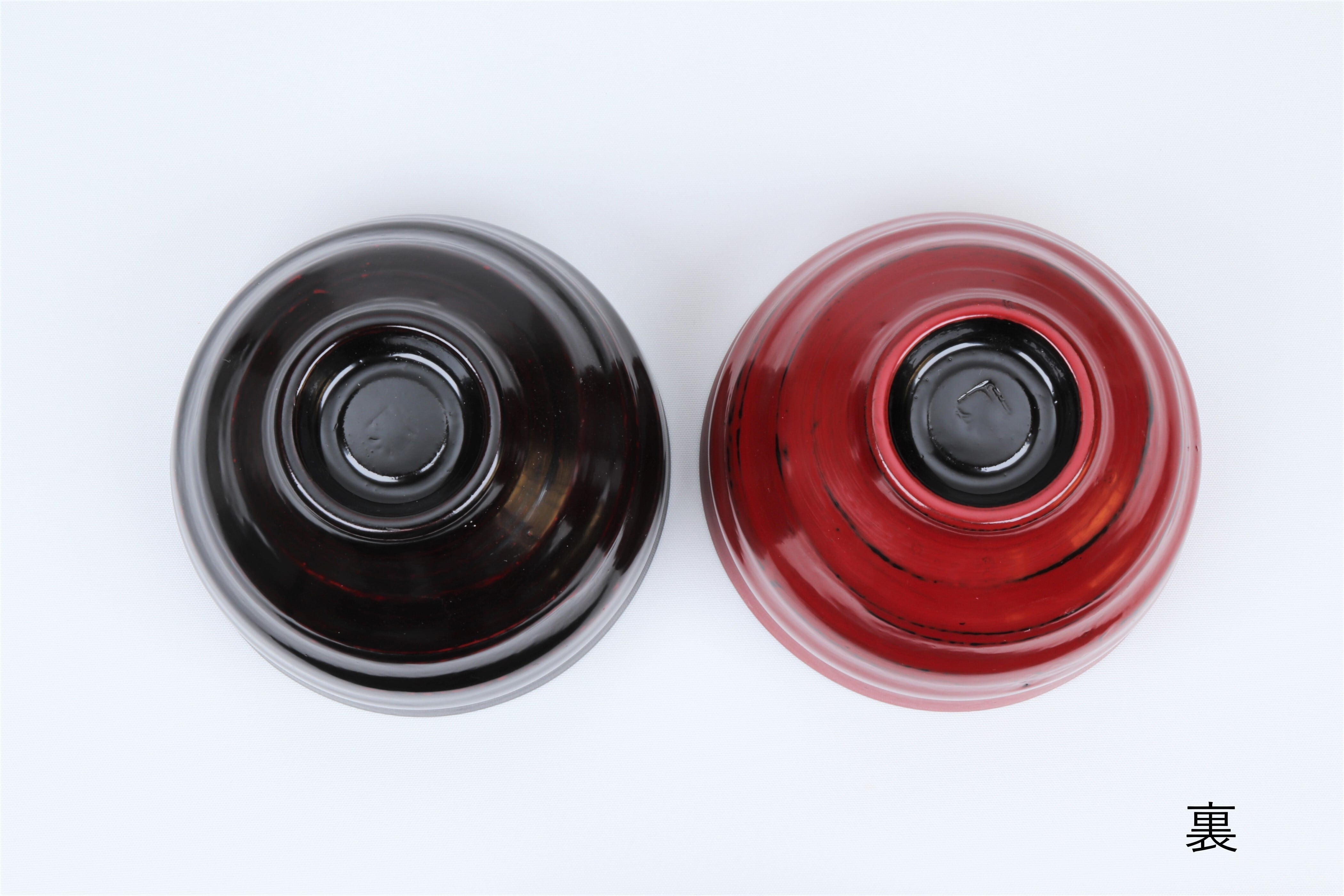 陶器に本漆を施し、重厚で艶やかな美しさをもつ陶器の質感と、日本古来の深い色合いをもつ曙(黒)、根来(赤)の伝統的な漆塗りの質感を堪能できる二つの美を併せ持った器です。