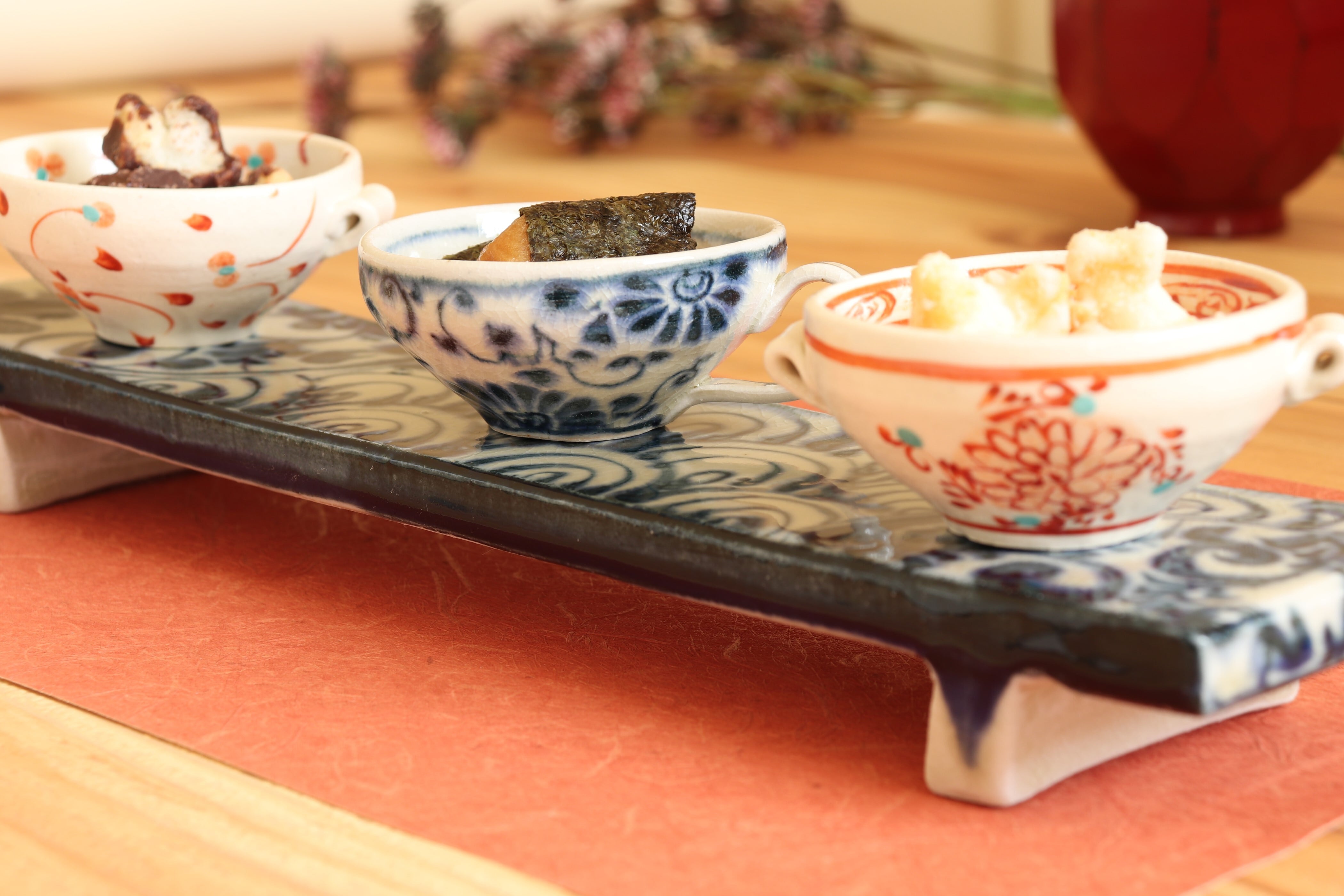 色絵シリーズは、酸化釉に、職人による手描きの上絵付を施した商品です。
