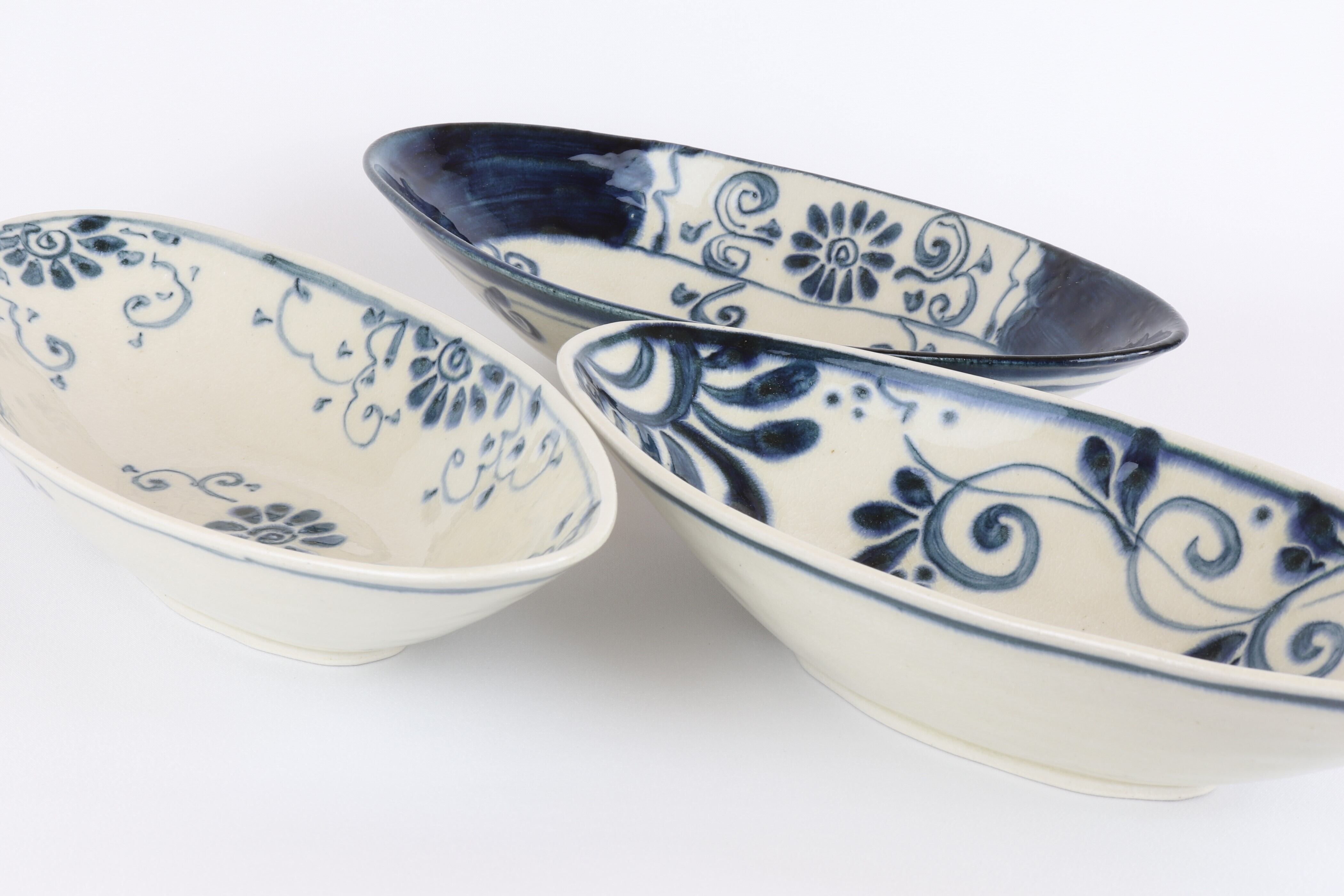 安南シリーズは、職人による手描きの染付に貫入釉(釉と素地の収縮率の差により、焼成後の冷却時に生じた釉のひび模様のこと)を施す事でがやわらかな風合いが特徴の商品です。