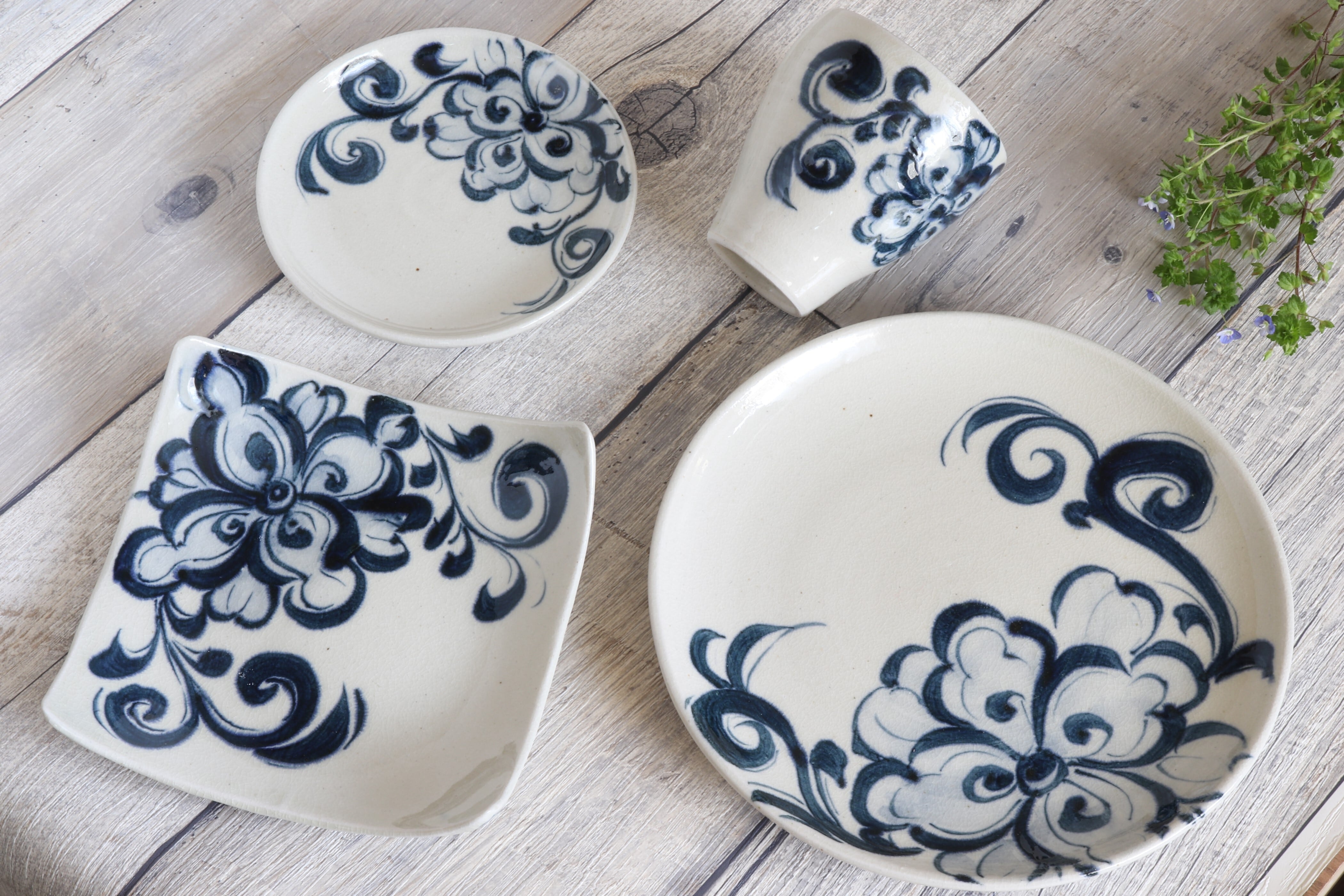 安南シリーズは、職人による手描きの染付に貫入釉(釉と素地の収縮率の差により、焼成後の冷却時に生じた釉のひび模様のこと)を施す事でがやわらかな風合いが特徴の商品です。