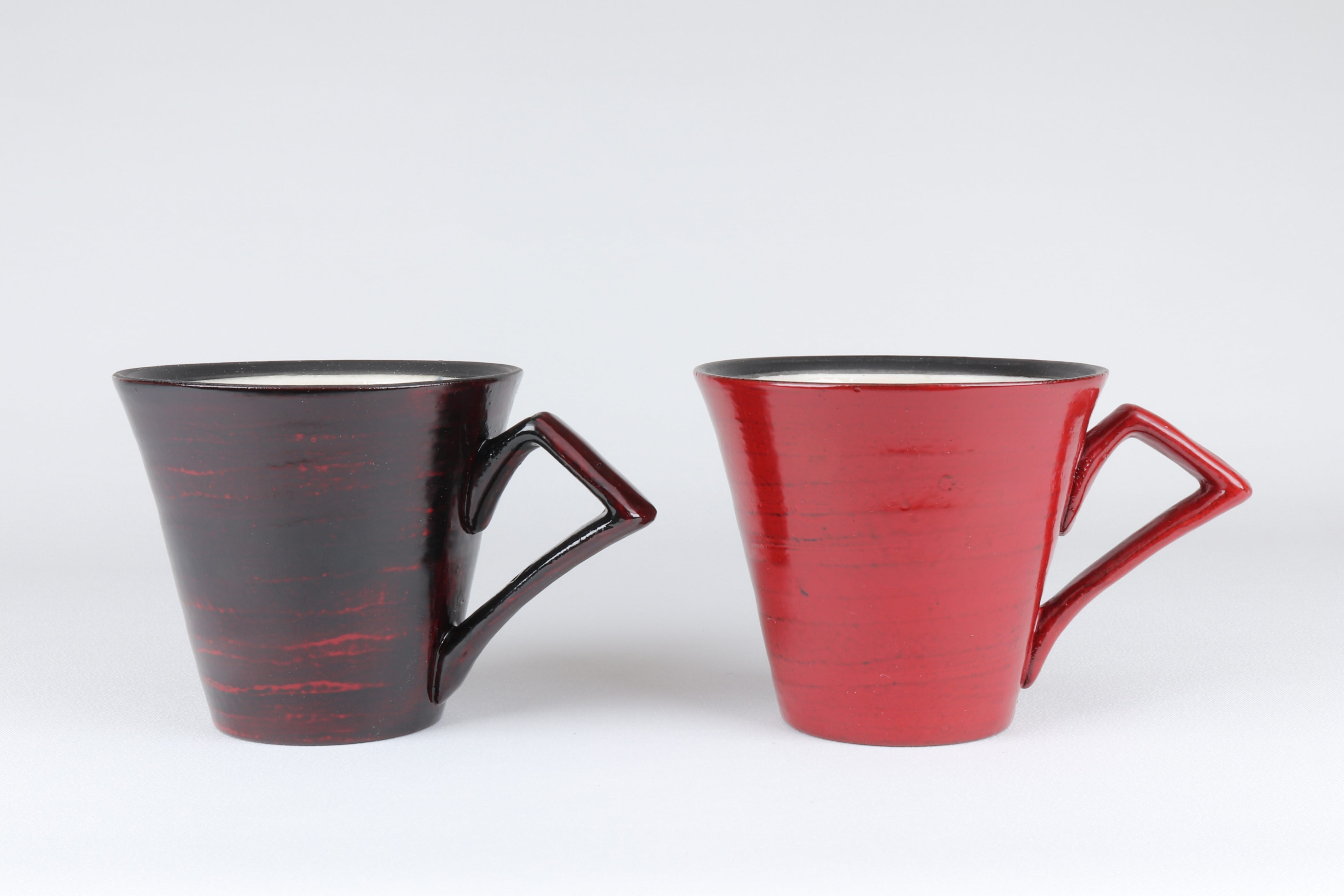 陶器に本漆を施し、重厚で艶やかな美しさをもつ陶器の質感と、日本古来の深い色合いをもつ曙(黒)、根来(赤)の伝統的な漆塗りの質感を堪能できる二つの美を併せ持った器です。