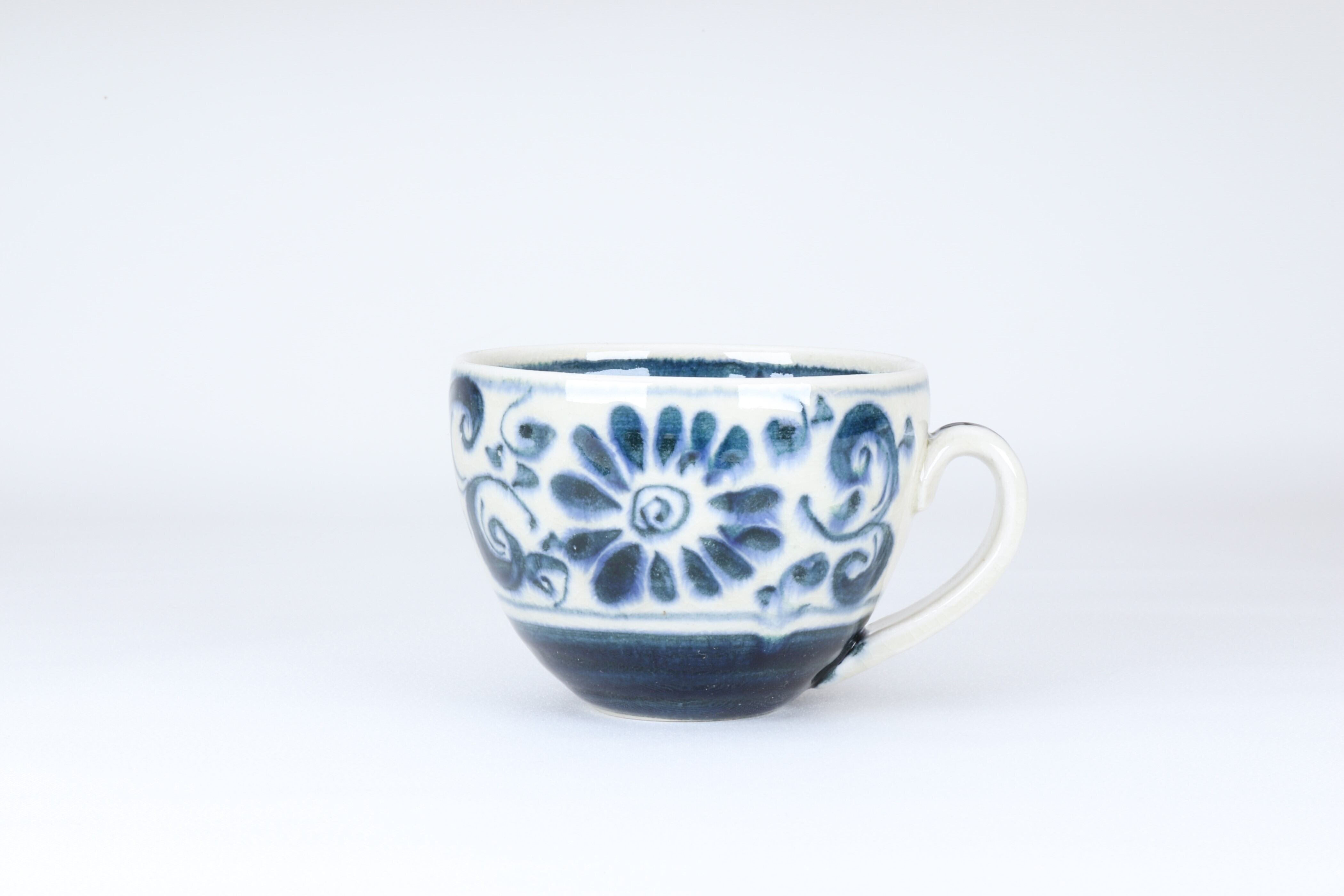 安南 丸コーヒーカップ 染唐草【B級品 特価】
