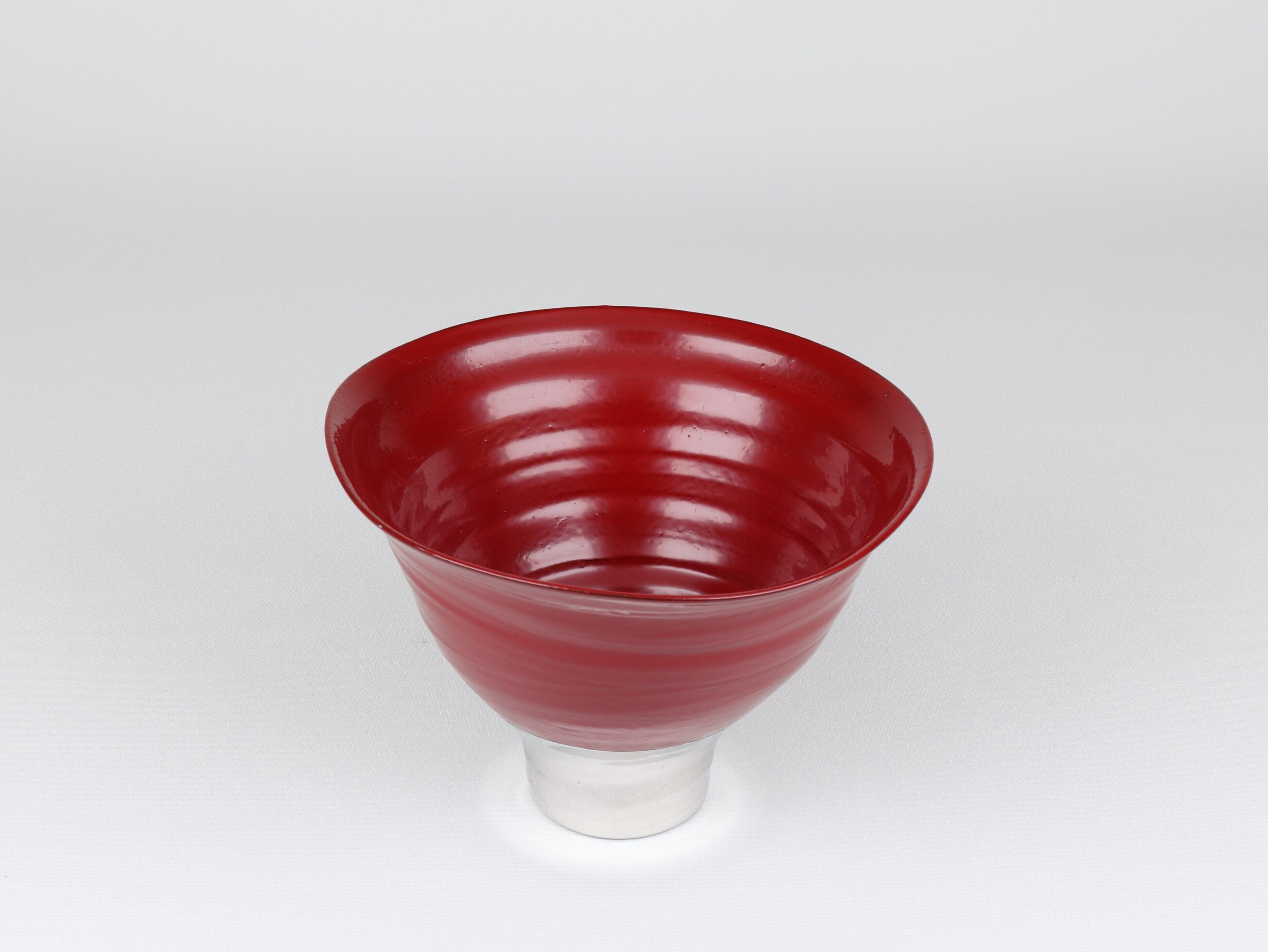 陶器に本漆を施し、重厚で艶やかな美しさをもつ陶器の質感と、日本古来の深い色合いをもつ曙(黒)、根来(赤)の伝統的な漆塗りの質感を堪能できる二つの美を併せ持った器です。高台の部分にプラチナを施しています。