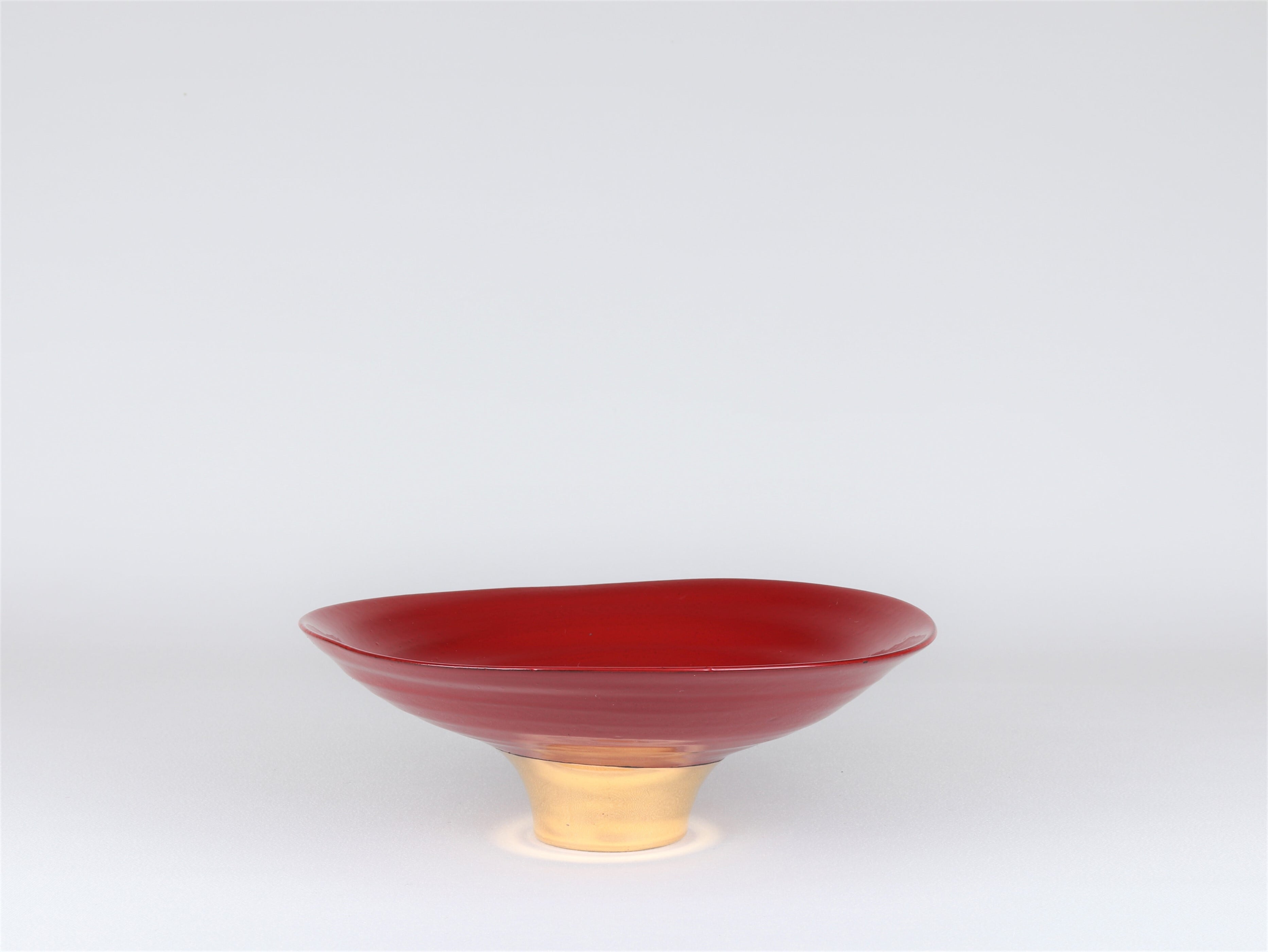 漆陶 高台平鉢小 金彩 赤【アウトレット】