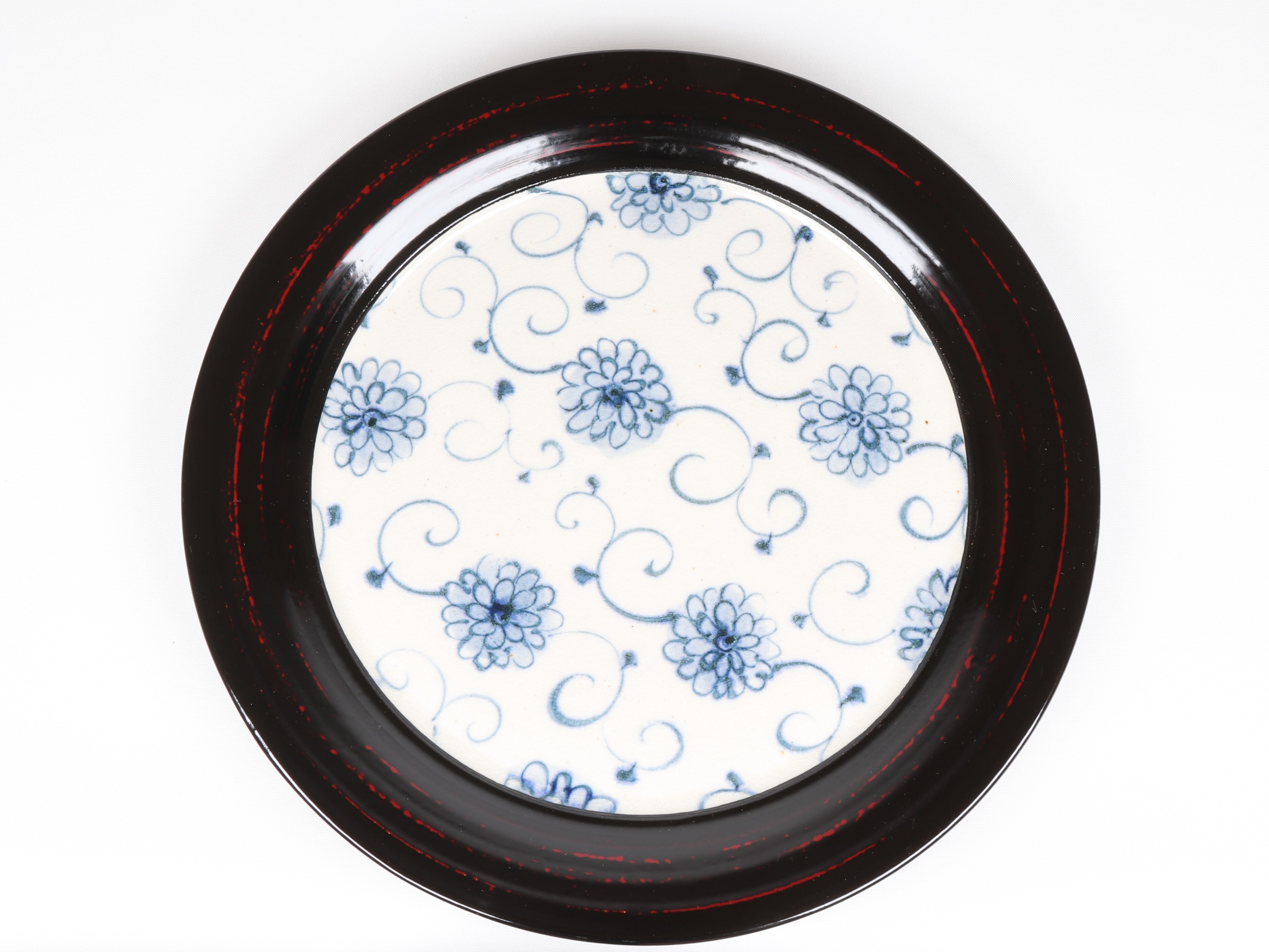 漆陶 リムプレート皿大 花唐草 【アウトレット】