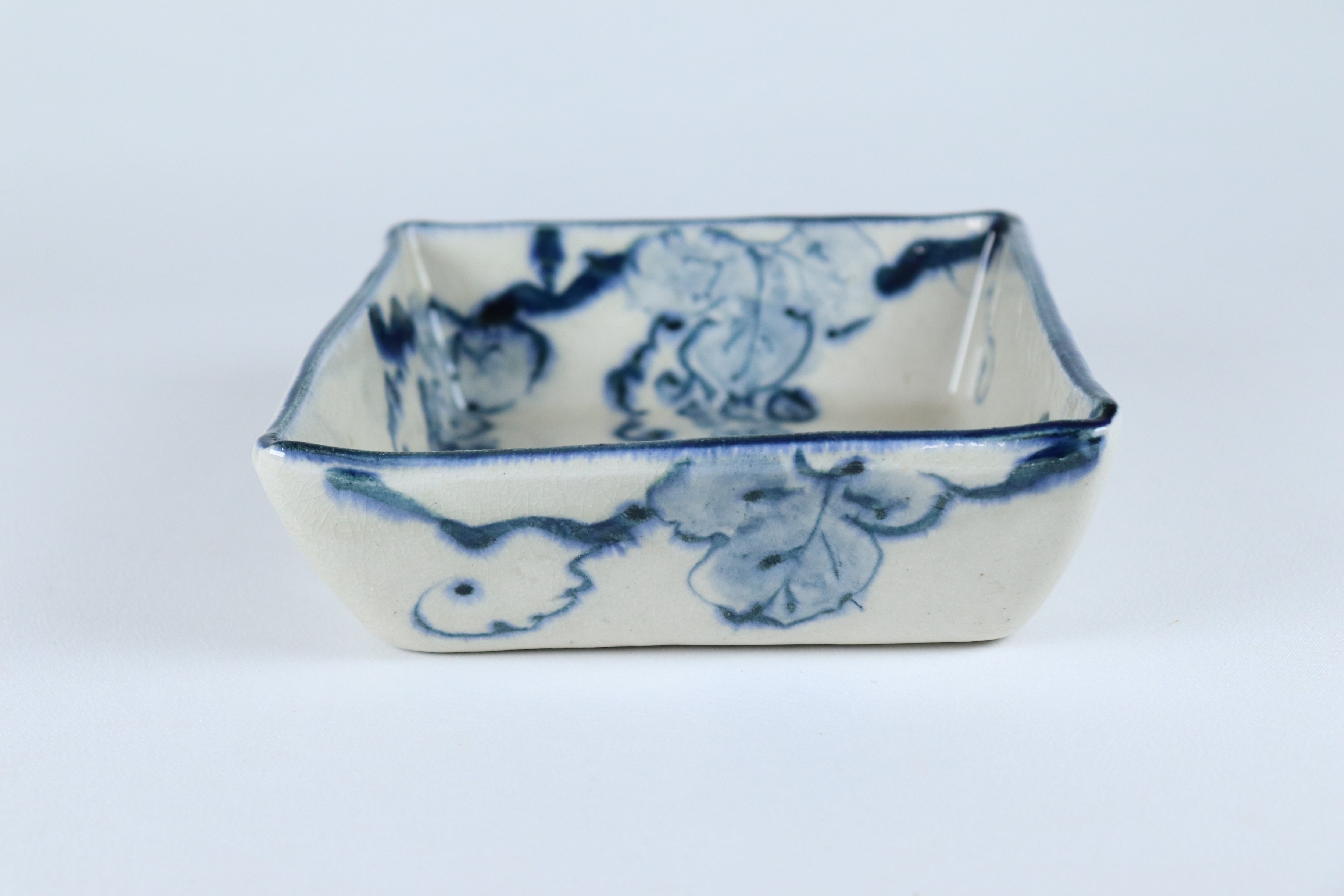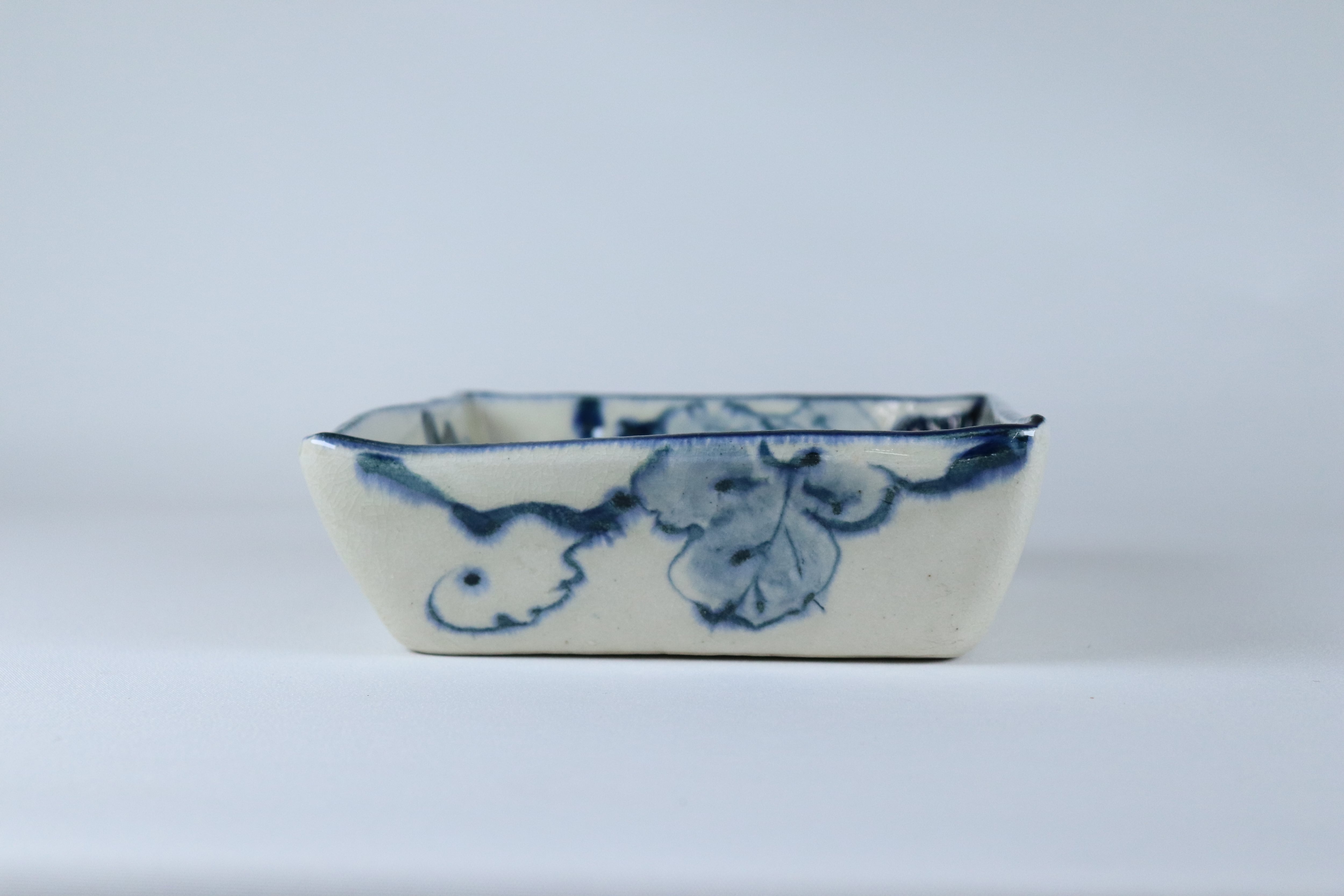 安南シリーズは、職人による手描きの染付に貫入釉(釉と素地の収縮率の差により、焼成後の冷却時に生じた釉のひび模様のこと)を施す事でがやわらかな風合いが特徴の商品です。