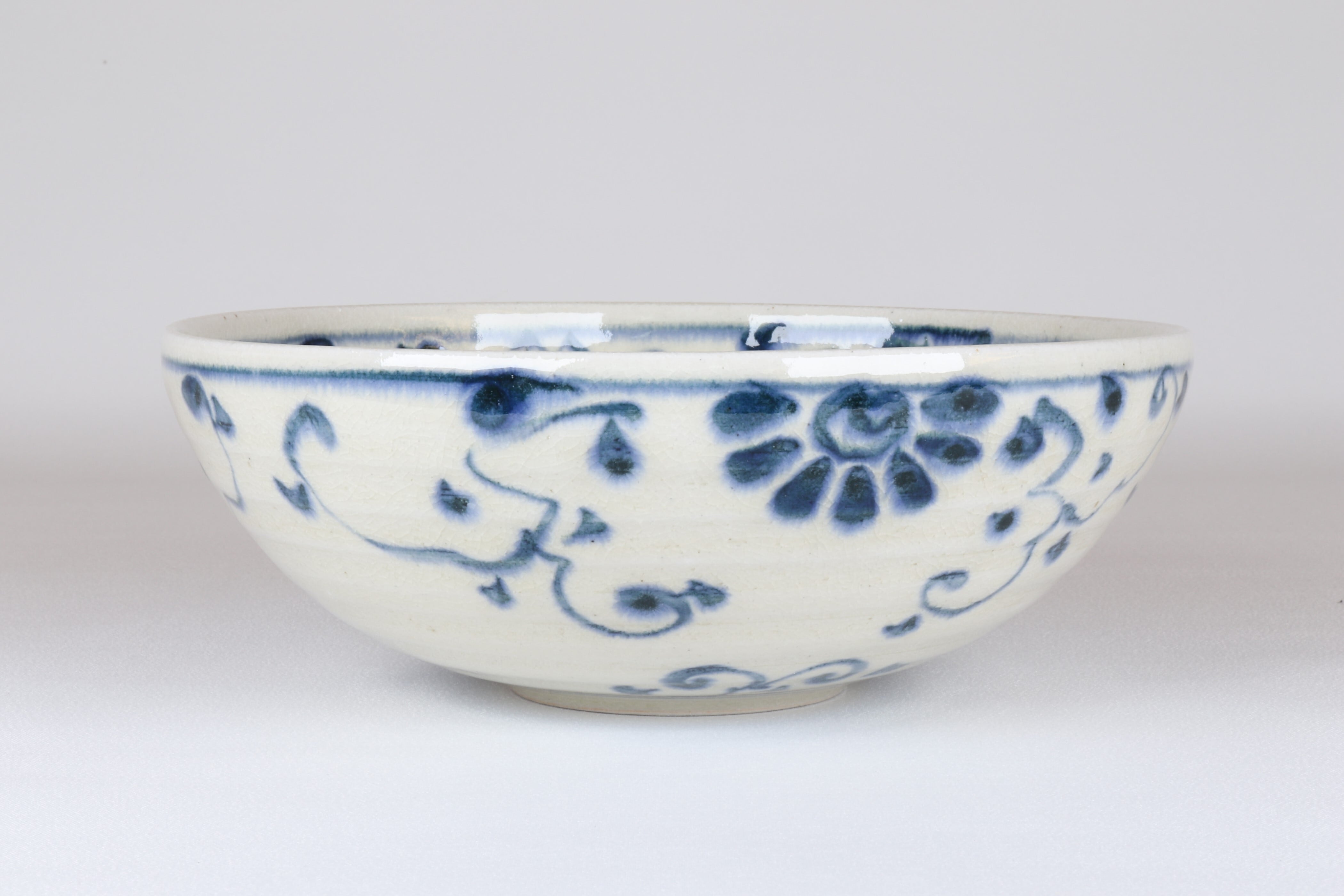 安南シリーズは、職人による手描きの染付に貫入釉(釉と素地の収縮率の差により、焼成後の冷却時に生じた釉のひび模様のこと)を施す事でがやわらかな風合いが特徴の商品です。