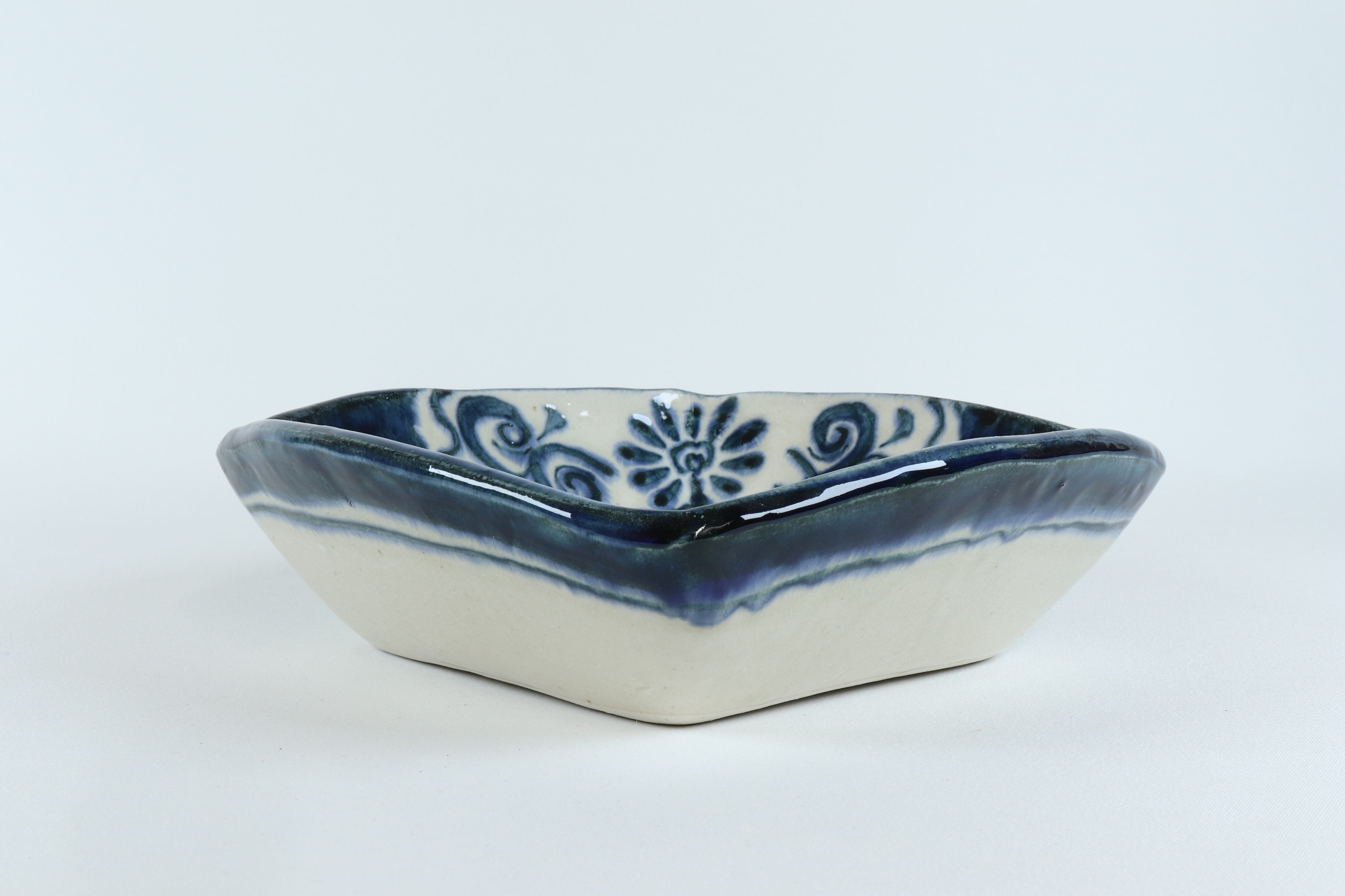 安南 なで角四角鉢 染唐草【B級品 特価】