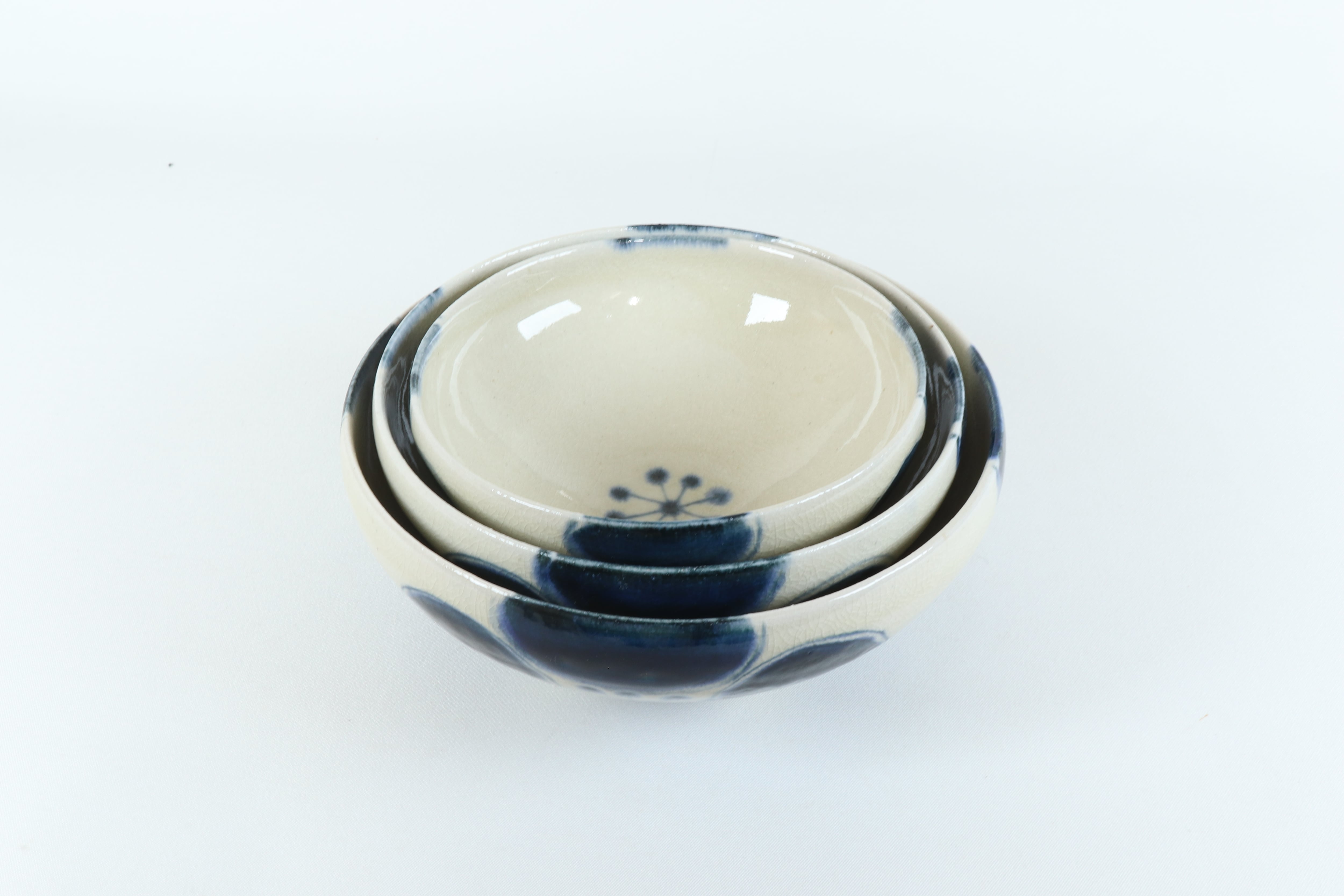 安南シリーズは、職人による手描きの染付に貫入釉(釉と素地の収縮率の差により、焼成後の冷却時に生じた釉のひび模様のこと)を施す事でがやわらかな風合いが特徴の商品です。