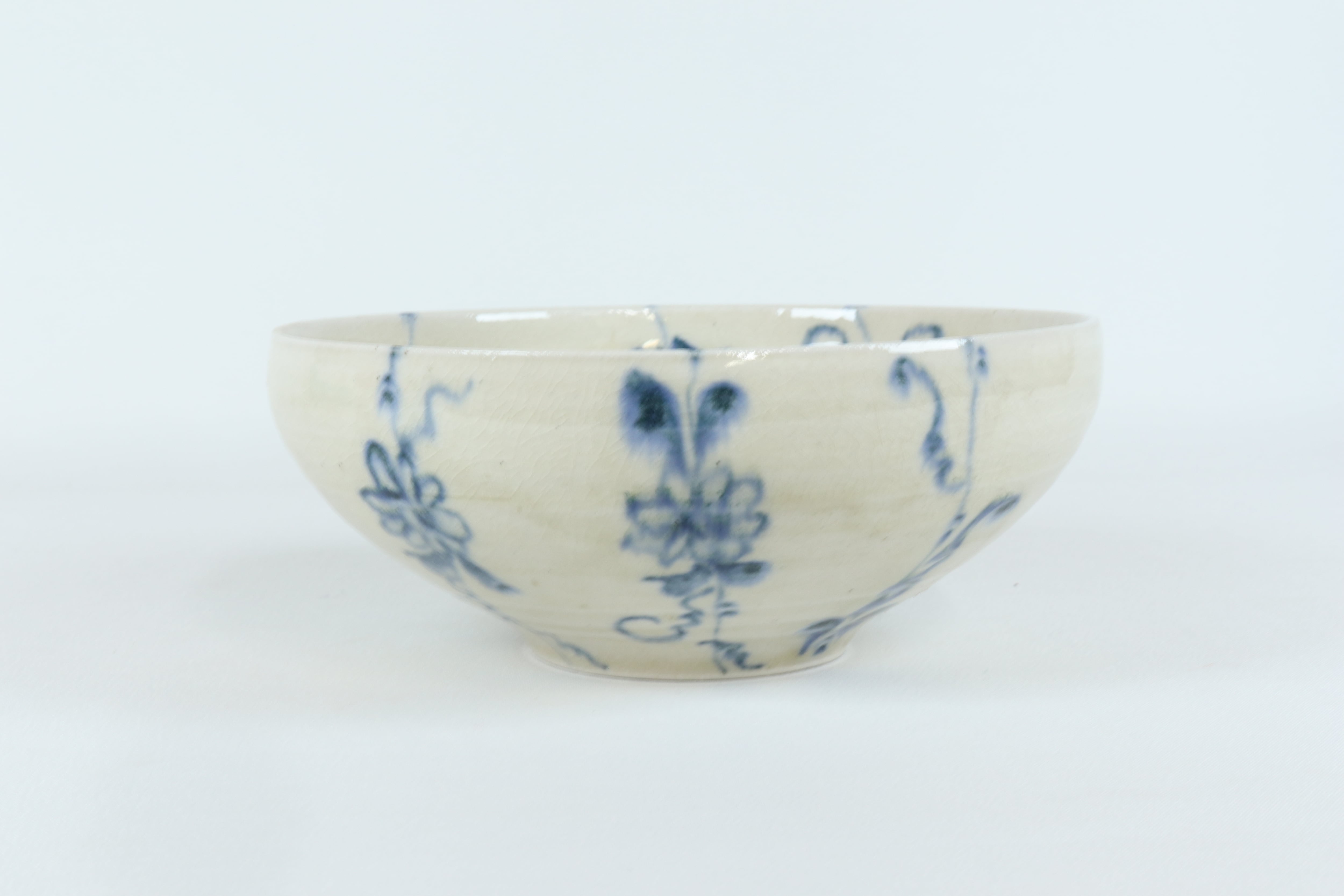 安南シリーズは、職人による手描きの染付に貫入釉(釉と素地の収縮率の差により、焼成後の冷却時に生じた釉のひび模様のこと)を施す事でがやわらかな風合いが特徴の商品です。
