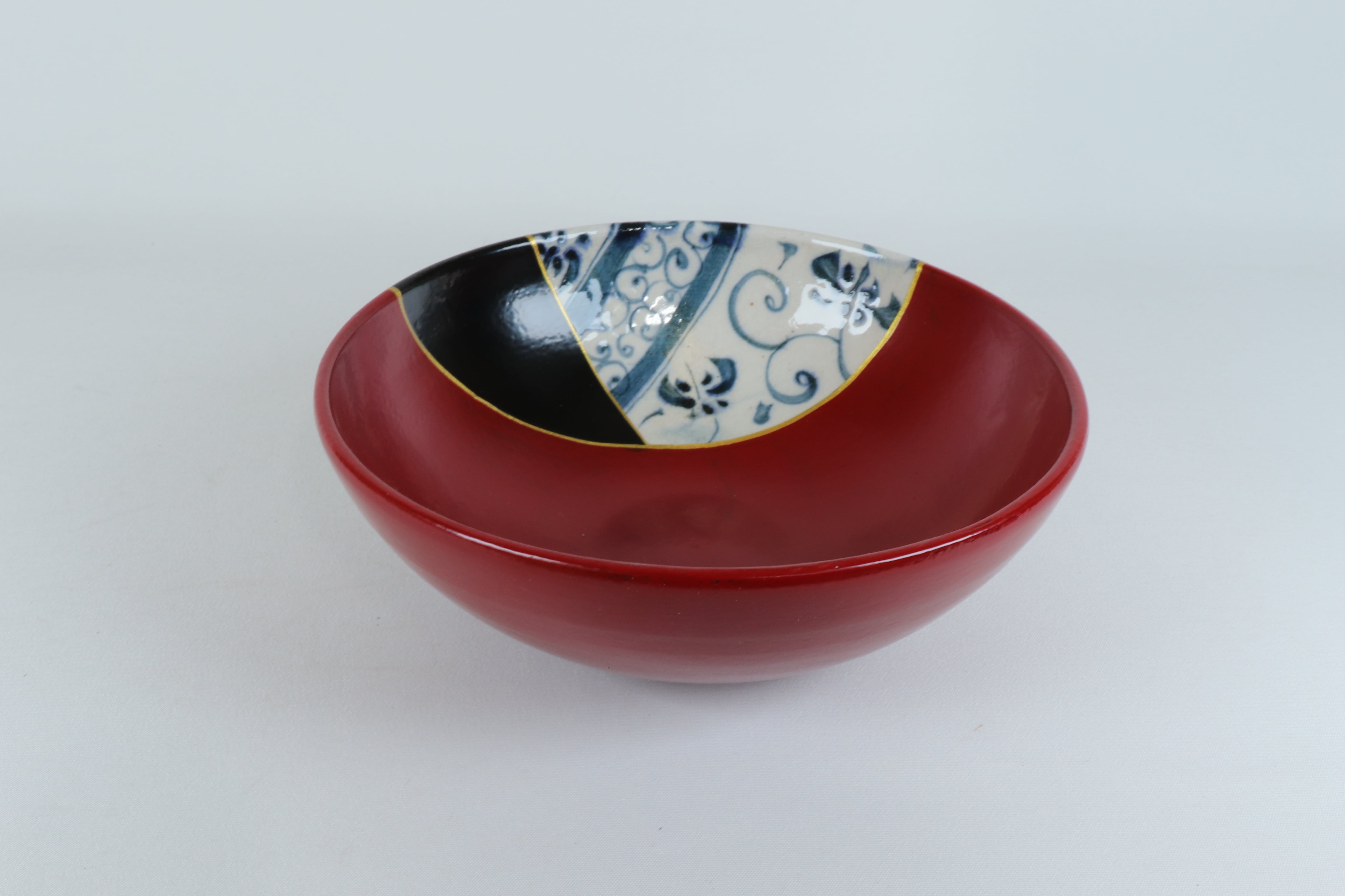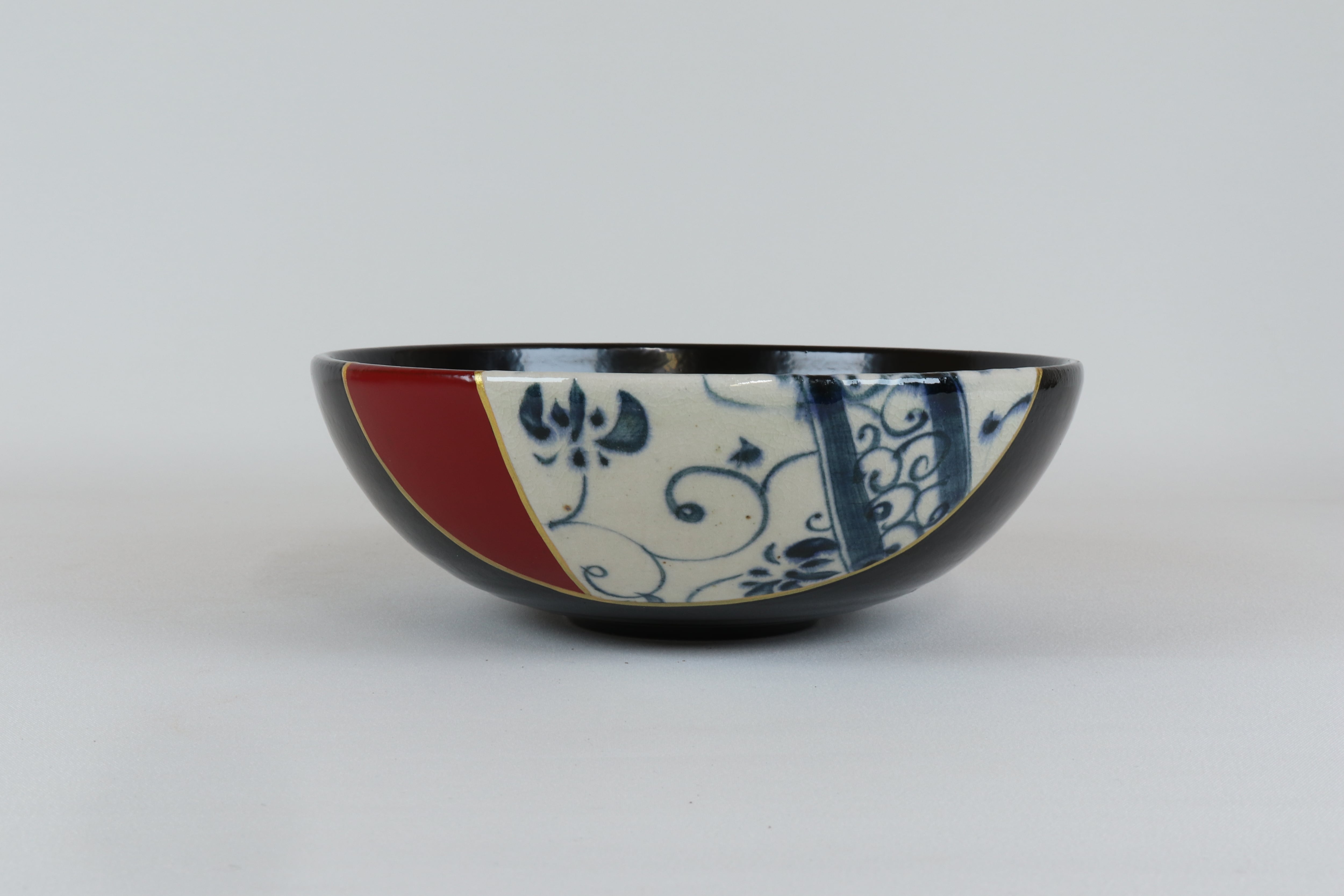 陶器に本漆を施し、重厚で艶やかな美しさをもつ陶器の質感と、日本古来の深い色合いをもつ曙(黒)、根来(赤)の伝統的な漆塗りの質感を堪能できる二つの美を併せ持った器です。