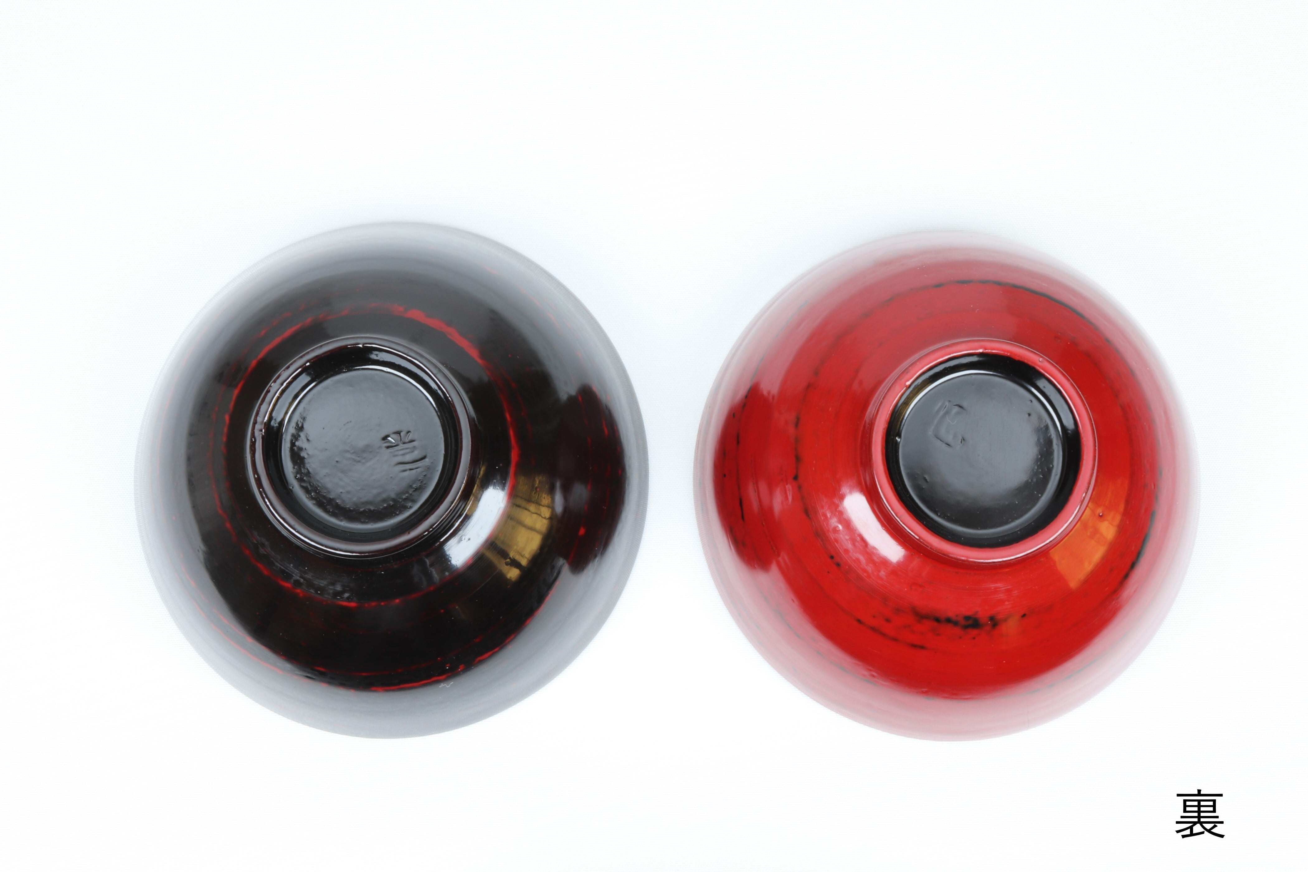 陶器に本漆を施し、重厚で艶やかな美しさをもつ陶器の質感と、日本古来の深い色合いをもつ曙(黒)、根来(赤)の伝統的な漆塗りの質感を堪能できる二つの美を併せ持った器です。
