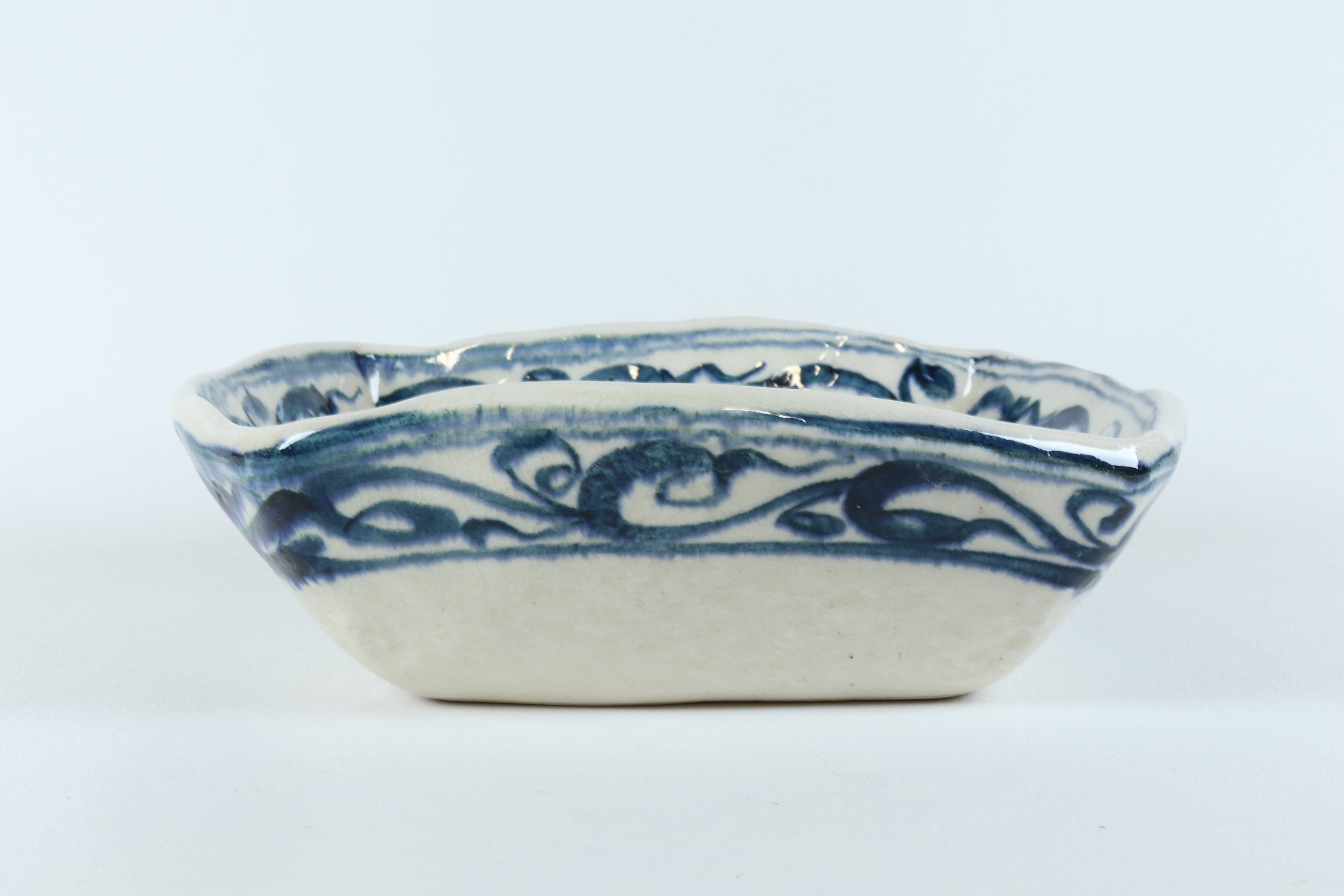 安南 なで角四角鉢 呉須更紗【B級品 特価】
