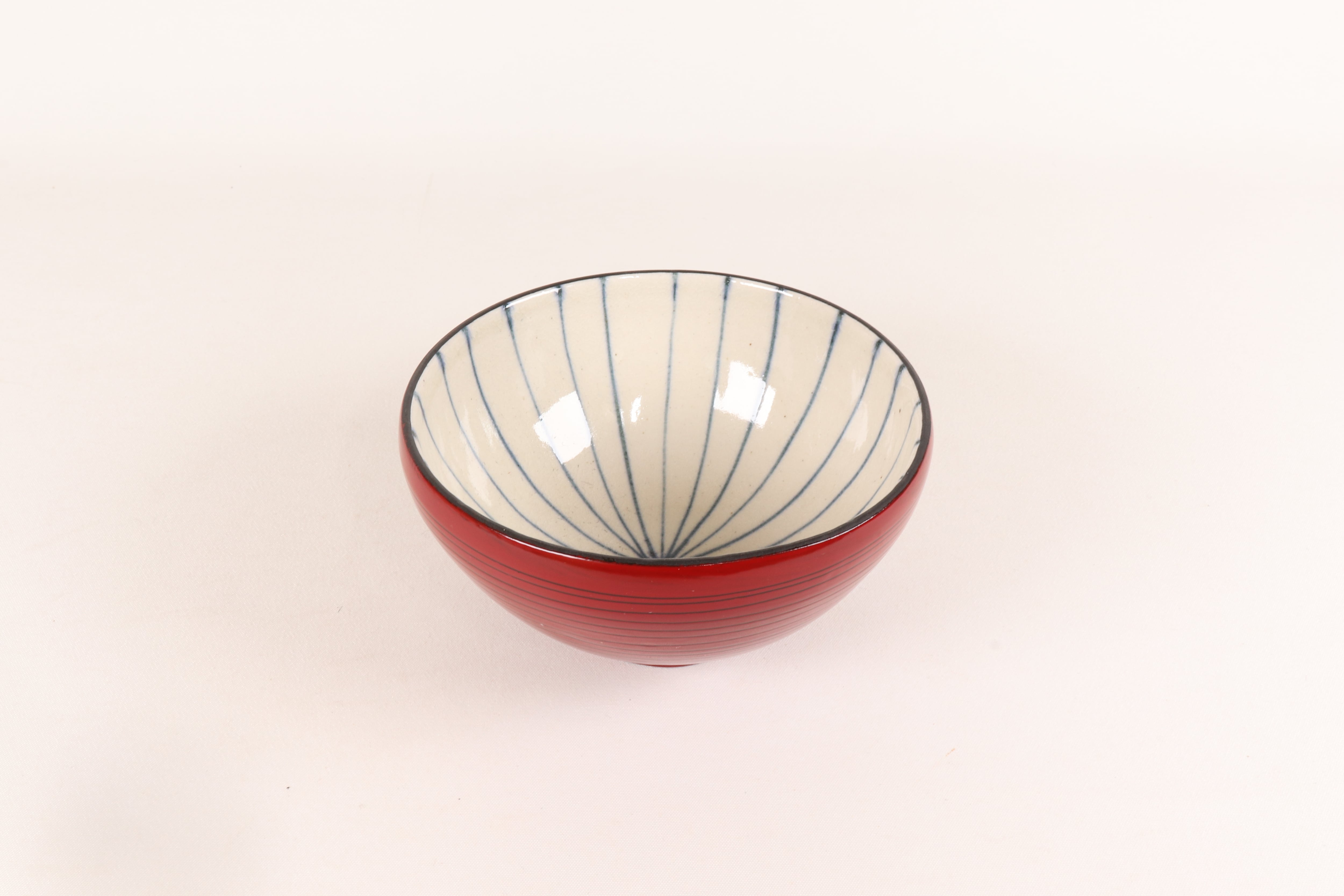 陶器に本漆を施し、重厚で艶やかな美しさをもつ陶器の質感と、日本古来の深い色合いをもつ曙(黒)、根来(赤)の伝統的な漆塗りの質感を堪能できる二つの美を併せ持った器です。