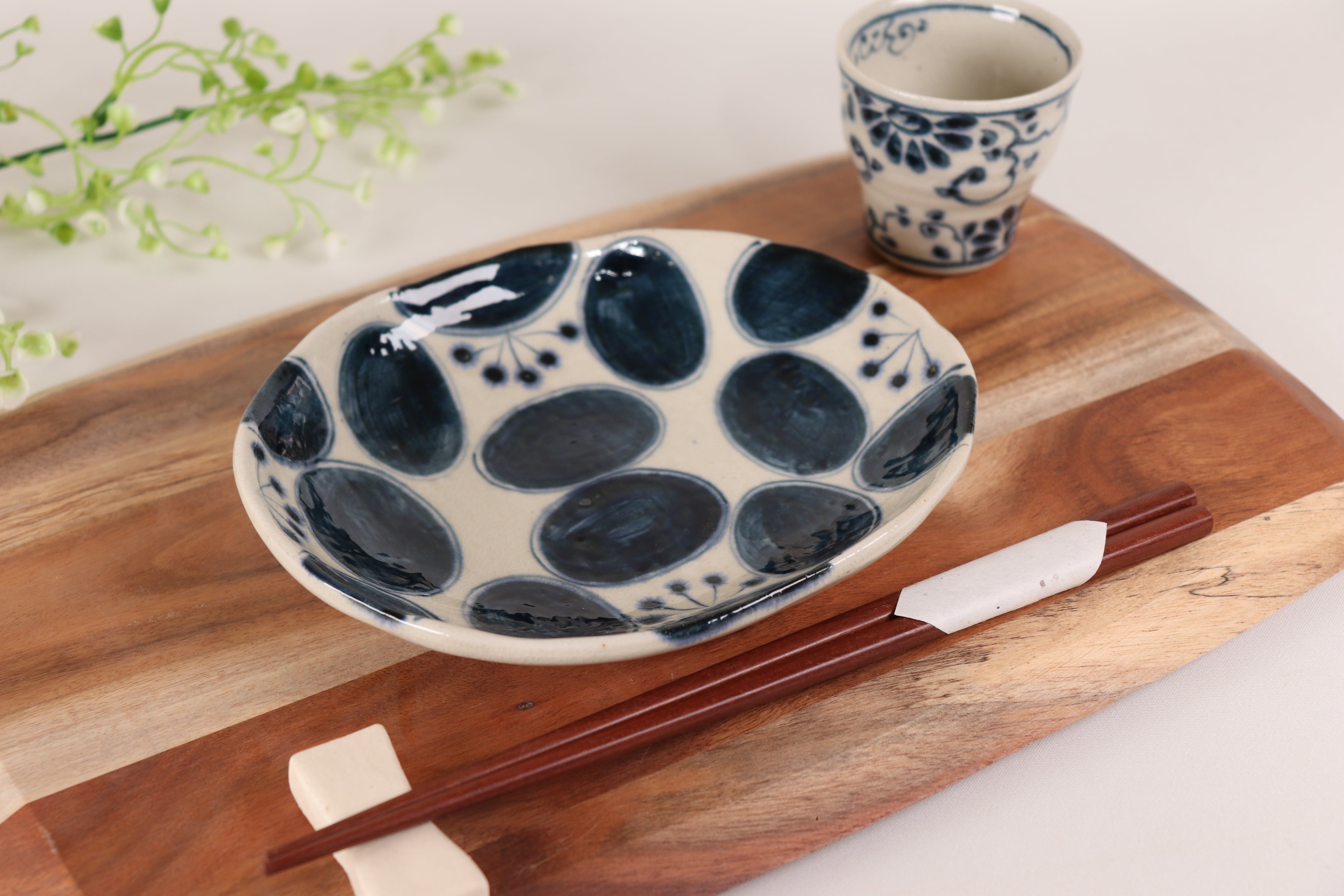 安南シリーズは、職人による手描きの染付に貫入釉(釉と素地の収縮率の差により、焼成後の冷却時に生じた釉のひび模様のこと)を施す事でがやわらかな風合いが特徴の商品です。